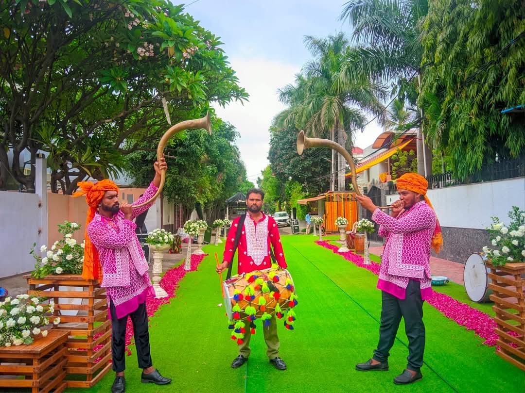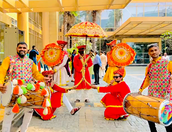 We specialize in Punjabi dhol, Rajasthani dhol, Nashik dhol, and other regional styles, perfectly tailored to match your event’s theme and spirit. Our performers are always well-dressed, disciplined, and professional, ensuring a seamless and memorable musical experience. At Rocky Punjabi Dhol Entertainment, we believe music is the soul of celebration—our powerful beats, perfect coordination, and energetic performances make every moment unforgettable, turning your event into an experience full of joy and enthusiasm.